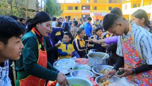विद्यालयमा सधै जसो लेख्न पढन र खेल्नमा व्यस्त रहने विद्यार्थीहरु आइतबार भने स्थानीय खानाका बिभिन्न परिकारहरु बनाउनमा लागिपरेका थिए । विद्यार्थीहरु कोदोको रोटी, फापरको रोटी, मकैको रोटी, मःम, बटुक, पानीपुरि, बन तरुल, सेल रोटी, अर्गानिक खुदो र गाजरको हलुवा लगातयका परिकार बनाउनमा व्यस्त देखिन्थे ।