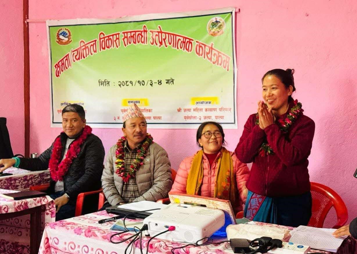 जल्पा, पाल्पा । पूर्वखोला गाँउपालिका वडा नं २ जल्पामा क्षमता अभिवृद्धि तथा व्यक्तित्व विकासको लागि आयोजना गरिएको उत्प्रेरणात्मक कार्यक्रम सम्पन्न भएको छ ।