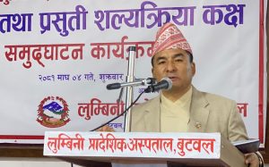बुटवल । लुम्बिनी प्रादेशिक अस्पतालमा थप गरिएको महिला तथा प्रसुती शल्यक्रिया कक्षको मुख्यमन्त्री चेतनारायण आचार्य र स्वास्थ्य मन्त्री खेम बहादुर सारुले सयुक्त रुपमा उदघाटन गर्नु भयो ।