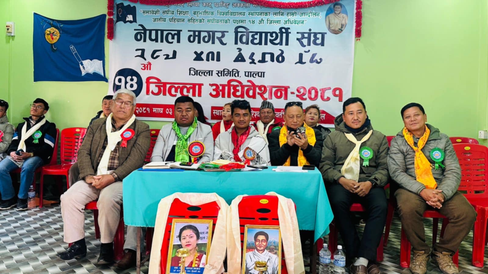 तानसेन, पाल्पा । केविन झेडी मगरको अध्यक्षतामा ११ सदस्यीय नयाँ कार्यसमिति चयन गर्दै नेपाल मगर विद्यार्थी संघ पाल्पाको १४ औं जिल्ला अधिबेशन पाल्पाको तानसेनमा सम्पन्न भएको छ ।