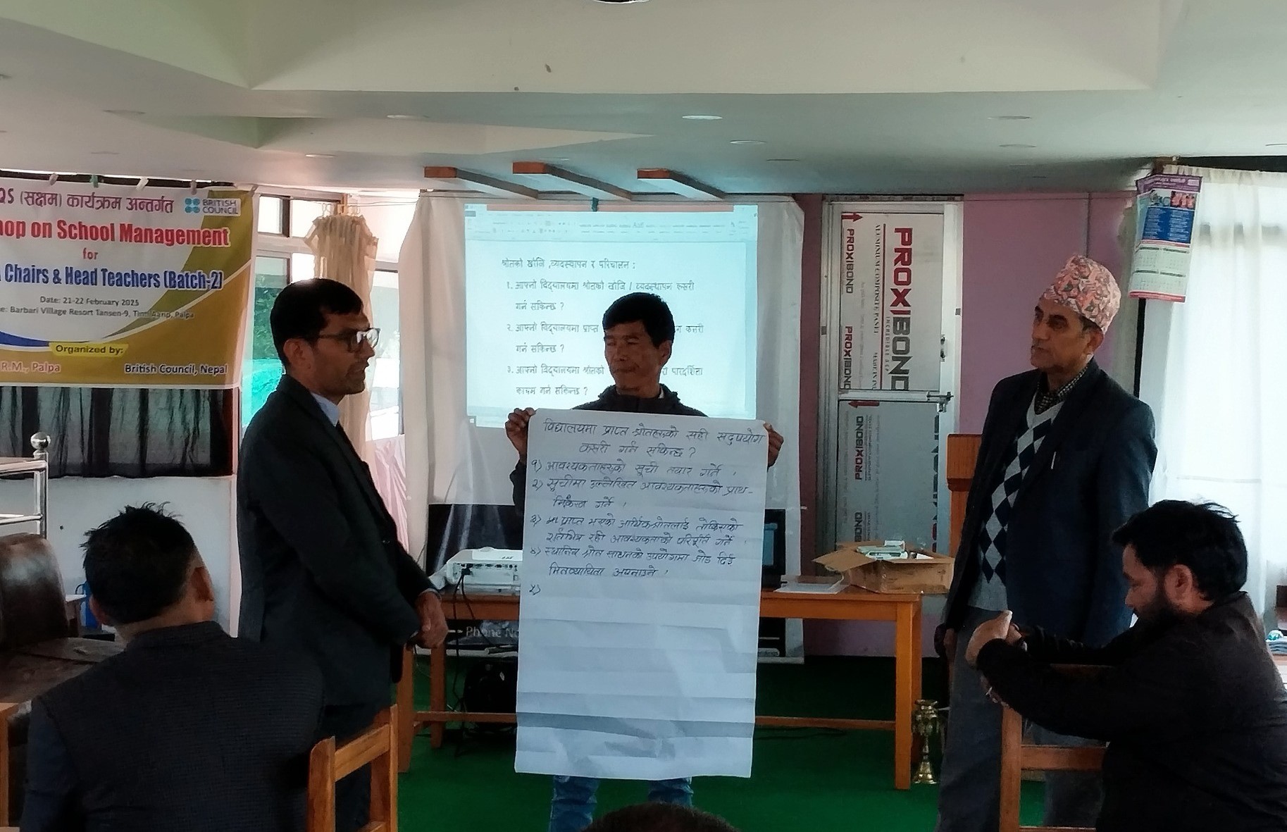 पाल्पा । माथागढी गाउँपालिका र ब्रिटिश काउन्सिल नेपालको सहकार्यमा सञ्चालित (QEQS) सक्षम कार्यक्रम अन्तर्गत विद्यालय व्यवस्थापन सम्बन्धि २ दिने कार्यशाला सम्पन्न भएको छ।
