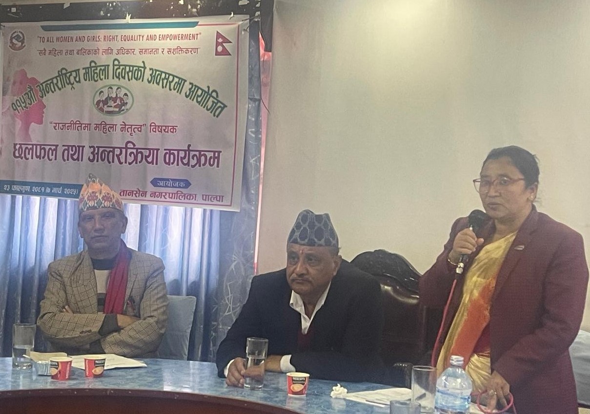 तानसेन, पाल्पा । तानसेन नगरपालिकाको आयोजनामा ११५ औँ अन्तर्राष्ट्रिय महिला श्रमिक दिवसको अवसरमा ‘राजनीतिमा महिला नेतृत्व’ विषयक छलफल तथा अन्तरक्रिया कार्यक्रम सम्पन्न भएको छ ।