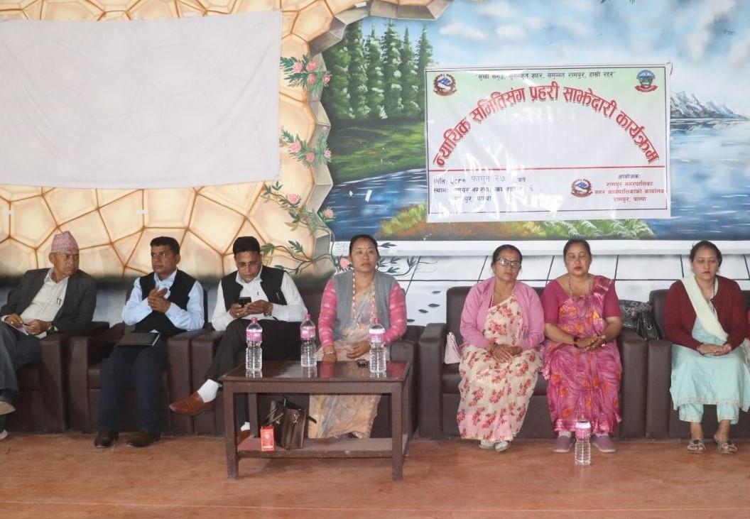 रामपुर, पाल्पा । रामपुर नगरपालिका न्यायिक समितिको आयोजनामा न्यायिक समितिसंग प्रहरी साझेदारी कार्यक्रम रामपुर पाल्पामा सम्पन्न भएको छ ।