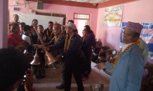 ग्रामीण शिक्षा तथा वातावरण केन्द्र रिड नेपालको आयोजनामा सिकाई प्रवर्धन परियोजना अन्तर्गत रम्भा गाउँपालिका २ कोटथरका महिलाहरुलाई पन्चेबाजा तालिम दिन थालिएको परियोजनाका व्यवस्थापक कपिल पुरीले बताउनु भयो । तालिमको पहिलो दिनमा महिलाहरुलाई पञ्चेबाजा समेत प्रदान गरिएको छ । कार्यक्रममा रम्भा गाउँपालिकाका अध्यक्ष विष्णुप्रसाद भण्डारी, प्रमुख प्रशासकीय अधिकृत वीरबहादुर पुन तथा परियोजनाका व्यवस्थापक कपिल पुरीले महिला अभिभावकहरुलाई सहनाई, ढोलक, दमाहा, नरसिंहा, टेम्कु, झ्याली, बिकुल लगायतका बाजाहरु प्रदान गर्नु भएको हो ।