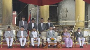 काठमाडौं, असोज ६ गते । राष्ट्रपति रामचन्द्र पौडेलसमक्ष चार जना नवनियुक्त मन्त्रीहरुले आज पद तथा गोपनीयताको शपथ लिनुभएको छ । राष्ट्रपतिको कार्यालय शीतल निवासमा दिउँसो ३ बजे आयोजित विशेष कार्यक्रममा उहाँहरुले शपथ ग्रहण गर्नुभएको हो ।
