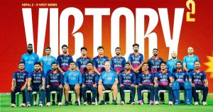काठमाडौँ, असोज १४ गते। नेपालले विश्व विजेता वेस्ट इन्डिजसँगको टी-२० सिरिज जितेको छ। टेस्ट राष्ट्रविरुद्धको सिरिज पहिलो पटक जितेर नेपालले इतिहास रचेको छ। तीन खेलको सिरिज नेपालले २-१ ले जितेको हो। सिरिजका दुई खेलमा लगातार विजयी भएको नेपाल फाइनलमा भने वेस्ट इन्डिजसँग पराजित भएको छ।