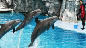In the spy war show actors were firing guns bombs and other weapons. It was like an action movie. I enjoyed it. After half an hour the show ended then we went for lunch at Savana restaurant at 12pm, that restaurant was big, also the food was in much amount. We took our meal and then went for fourth show dolphin show.