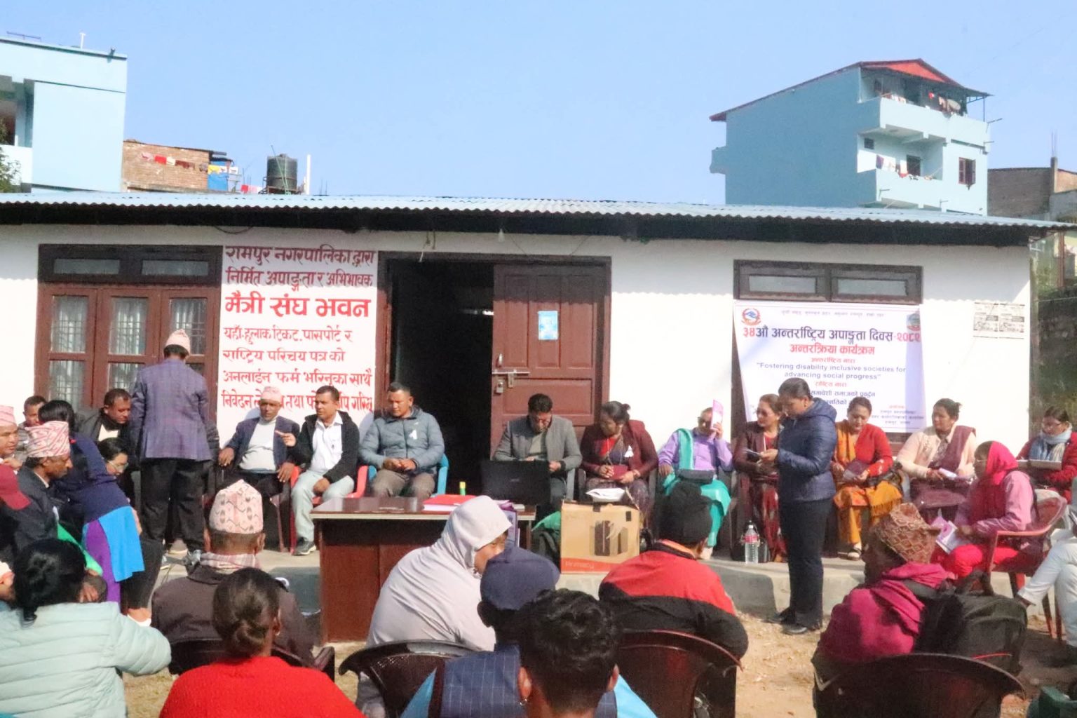 रामपुर, पाल्पा । ३४ औँ अन्तर्राष्ट्रिय अपाङ्गता दिवसको अवसरमा रामपुर नगरपालिकाले विविध कार्यक्रमसहित मनाएको छ। दिवसको अवसरमा अन्तरक्रिया कार्यक्रम, अपाङ्गता परिचयपत्र वितरण तथा सहायता सामग्री वितरण गरिएको थियो ।