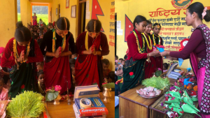 विद्यार्थी भाइबहिनीहरुको परियोजना कार्य अन्तर्गत जमरा राखिने अन्नहरु तथा जमरा राख्ने विधि तथा दशैमा देवीहरुको पुजा गर्ने विधि परम्पराको बारेमा समेत व्यवहारिक ज्ञान दिईएको प्रअ विजयदिप पन्थीले बताउनु भयो । बिद्यार्थी भाइबहिनिहरुले दशै विशेष नृत्यमा आ-आफ्नो कला समेत प्रस्तुत गरेको शिक्षिका मेनुका थापाले बताउनु भयो ।